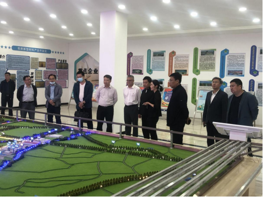 首先,冯平平通过沙盘展示向李胜院长一行简要介绍阜新新型材料产业开发区规划建设、发展优势、产业布局、企业发展等情况。