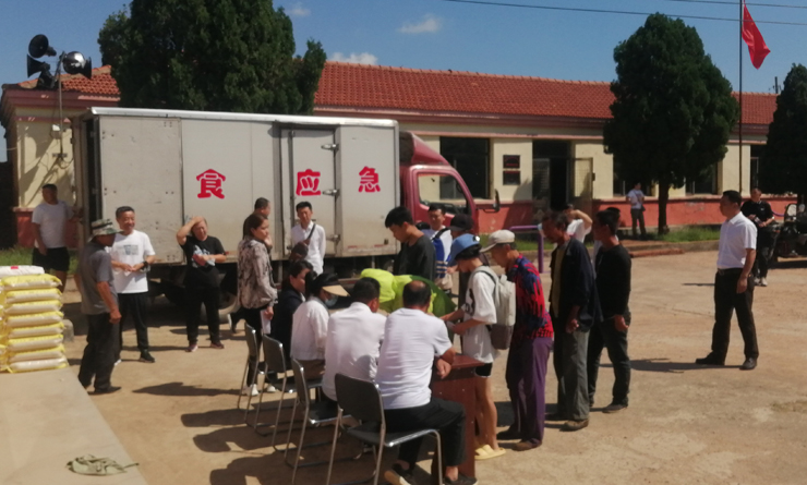 上午8点40分随着总指挥高子柱宣布演练开始,各项工作开始有序进行。市汇恒粮油储备有限公司按指令出库市级储备成品粮食小麦粉400公斤、大米400公斤,制作出库手续,应急粮食运输车辆进场、装车、封箱、发运,上午10点,运粮车辆提前到达招束沟镇指定村部,审核确认受灾人员信息并有序发放粮食。