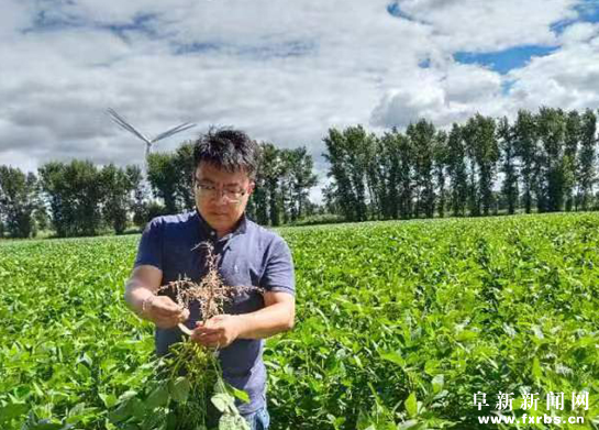 今年初,彰武县为科学推进沙化耕地综合治理工作的深入开展,在阿尔乡镇北甸子村建立了500亩沙化耕地综合治理核心项目区和3000亩示范区,推广应用腐熟农家肥,选择收获后留茬作物推进农业生产。在核心项目区,省农科院沙化耕地治理团队与彰武县农业中心科技人员密切跟踪项目建设工作,实施14个品种大豆对比试验,增施4个不同数量的腐熟农家肥,采取作物带状间种模式,即玉米和大豆、玉米和花生、谷子和大豆、高粱和大豆复合带状种植,利用边行效应,增加作物产量,实现稳粮增豆,取得了初步成效。同时,彰武县通过示范区的典型带动,在科技团队的技术指导下,促进阿尔乡镇调减花生面积2万余亩,改种大豆、玉米,促进种植结构的调整。