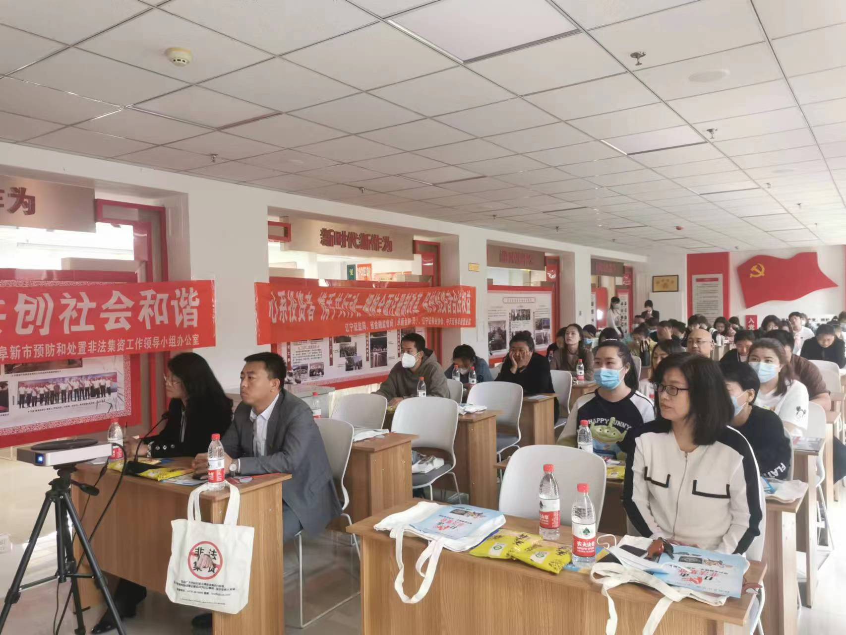 宣传教育活动由阜新市发改委副主任刚丽玫主持,中天证券阜新分公司刘畅讲解“走进全面注册制”证券期货知识,海州公安分局经侦支队王晓站宣讲非法集资典型案例、表现形式、常见手段等。