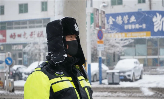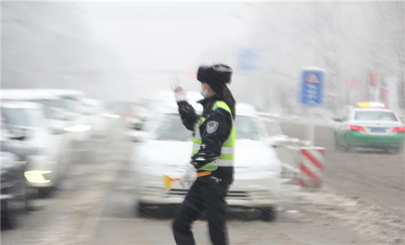 彰武县公安局交警大队民警和警辅人员在主要路口、路段进行道路交通疏导、车辆分流、为过往行人、车辆提供安全指引,有效降低过往车辆速度,确保极端天气下车辆出行安全。