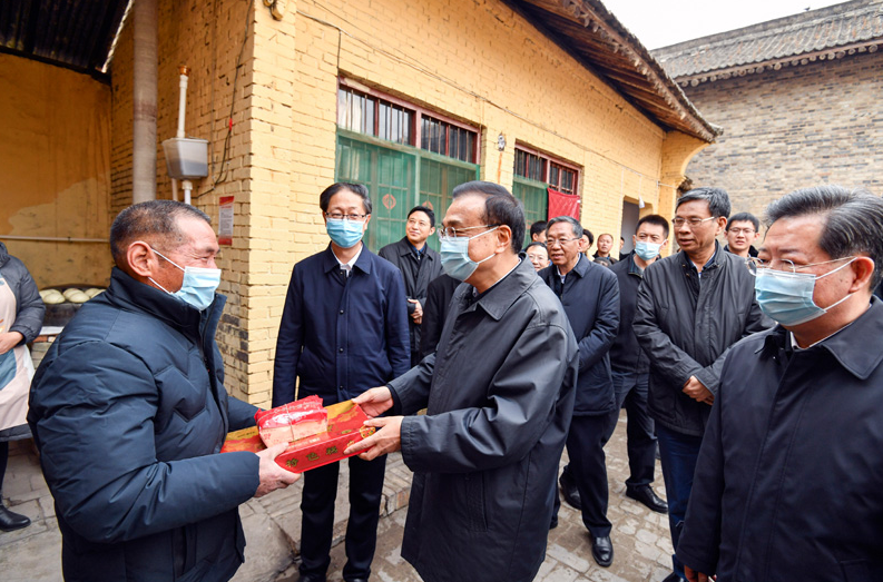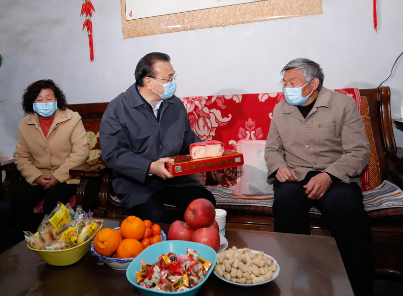 李克强2月7日上午考察山西运城年货市场,强调要保供稳价,并用心选购了两份年货。随后,总理来到夏县庙前镇吴村,走进脱贫户范起山家中,关切询问他家有几亩地、种地和外出打工各自收入多少,勉励他们脱贫以后不松劲、不止步。临行前,李克强把一份年货送到范起山手中说,这是我自己在集市上买的,代表我个人的一点心意,祝你们年年有余、越过越好。下午,总理来到盐湖区圣惠片区棚户区居民孟树平家中,询问他们生活有什么不便。孟树平说,这里上下水不畅,下雨天雨水会倒灌,冬天没有暖气,迫切希望改造。地方负责同志汇报了他们正在引入市场力量加快改造,李克强予以肯定,叮嘱说,要顺应群众期盼抓紧开工,国家对棚户区和老旧小区改造会继续予以支持。出门前,总理把另一份年货送到孟树平手中,祝他家早日搬进新楼房,把“老日子”过成“新日子”,过上“好日子”。
