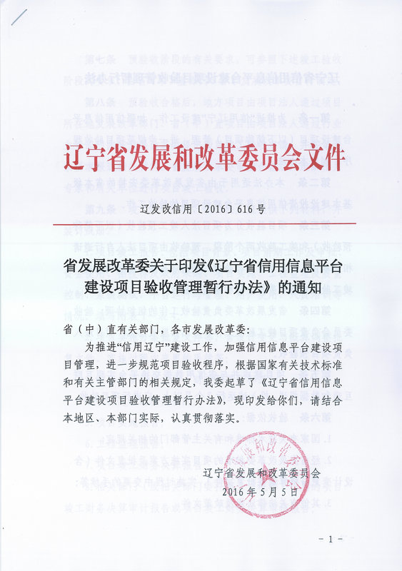 省发展改革委关于印发《辽宁省信用信息平台建设项目验收管理暂行办法》的通知