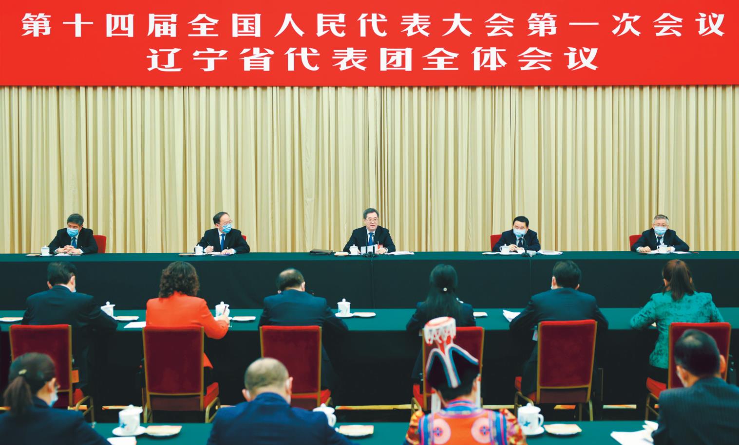 三月七日,中共中央政治局常委、中央办公厅主任丁薛祥参加十四届全国人大一次会议辽宁代表团的审议。 新华社记者 刘 彬 摄