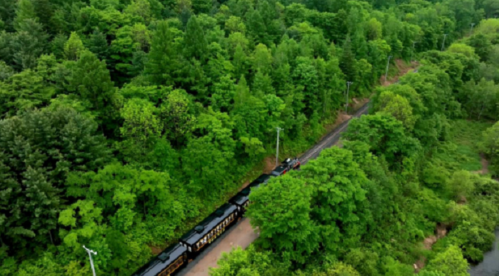 图为黑龙江省海林市林海雪原风景区的森林小火车