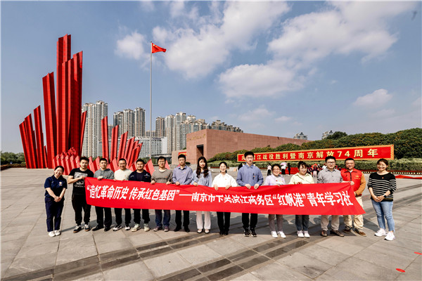 为庆祝渡江战役胜利暨南京解放74周年,南京下关滨江商务区党工委、团工委组织南京航运交易中心、长江南京航道局、长航下关派出所、江豚保护协会等十余家企业青年党员、团员,赴渡江胜利纪念馆开展“追忆革命历史,传承红色基因”主题学习活动。