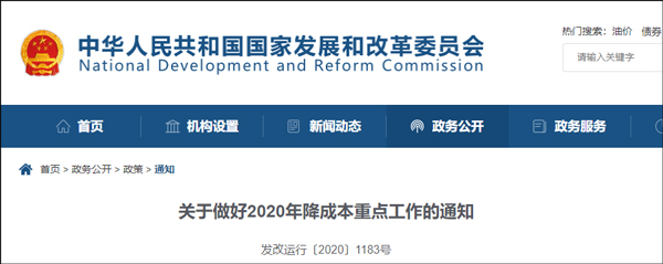 四部门发布《关于做好2020年降成本重点工作的通知》