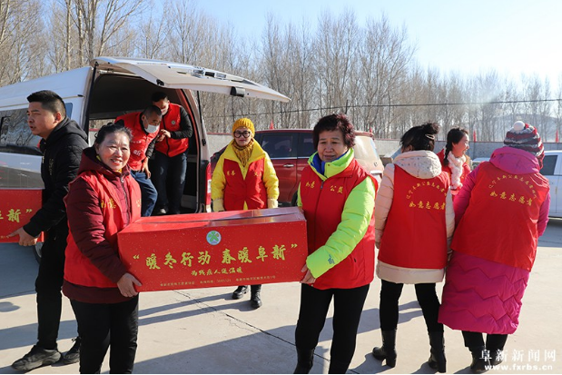 此次活动中,党员志愿者积极发挥先锋模范作用,带头搬运捐赠物品。出发前,大家一起把100 个暖心礼包摆放整齐。暖心礼包中有米、油、鸡蛋、猪肉等各种年货,这些暖心礼包被送到阜蒙县七家子镇石场村、沙拉镇樱桃沟村、王府镇烟台营子村及部分社区的贫困残疾人家中,让残疾人感受到温暖。
