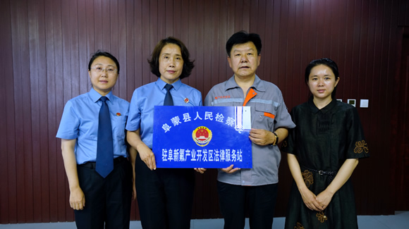 阜蒙县院党组书记、检察长王芳,阜新氟产业开发区管理委员会副主任包维东共同为法律服务站揭牌。