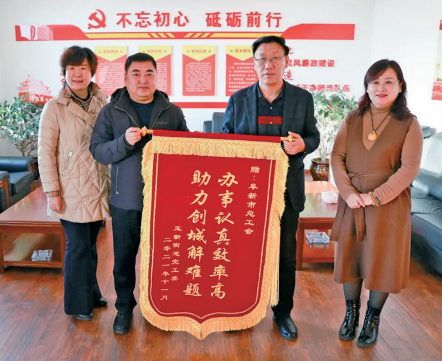 近日,细河区玉新街道和沙海社区的同志来到市总工会,为市总工会和机关第一党支部、第二党支部送来锦旗,感谢市总工会在创建全国文明城市工作中给予的大力支持。