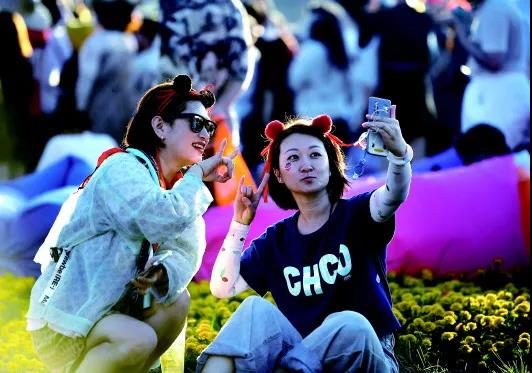7月17日,观众在阜新草莓音乐节现场拍照留念。新华社记者蔡湘鑫摄