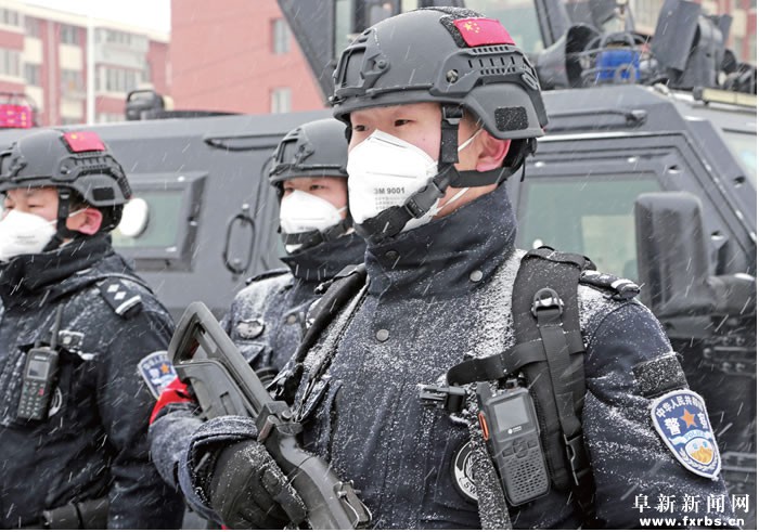 今年27 岁的市公安局巡特警支队特警突击队民警陈建祥在风雪中执勤。本报记者张奎武摄