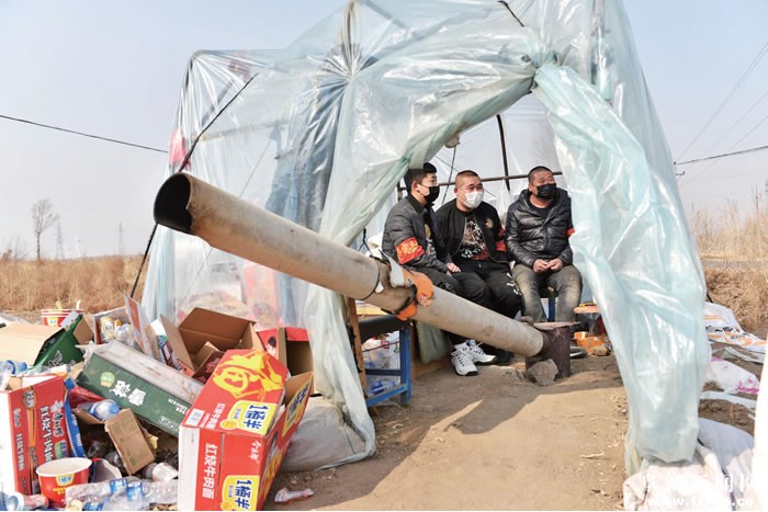 阜蒙县泡子镇一防疫点,一群叫不上名字的年轻人正在执勤。倪福友摄
