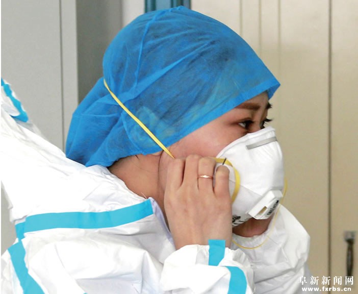 今年29 岁的市中心医院心内一病区护士张冰正在换隔离服,准备进入